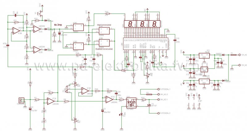 Kapható a kereskedelemben kész panelműszer. (kb 1000-1500 Ft) Nekem is az van rajta. Ez a rajz kicsit bonyi, de le lehet egyszerűsíteni. Ez a megoldás amikor elkezdet tekerni a potit autómatikusan átkapcsol a beállítandó hőfok kiírására, majd ha már nem tekered a potit 2-3 másodprc mulva viszaáll a valós hőmérséklet értékra. És azon is marad. Ha nem kell ez az autómatika bele, akkor a bal felső sarokban lévő művalati IC-k, és a 4066-os kapcsolók elhagyhatók. Ilyenkor mindig az épp aktuális hő értéket írja ki a kijelző. Kérdezz nyugottan! tibi
