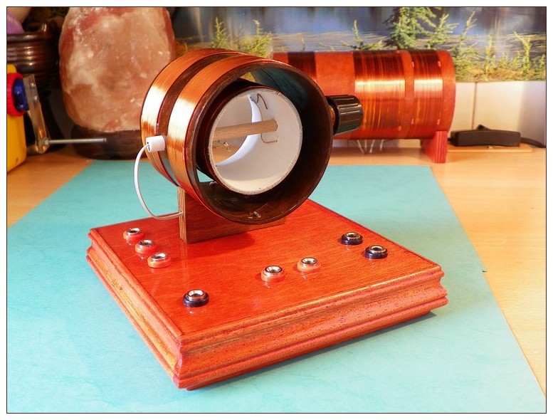Én a mellékelt képen látható megoldást választottam. A forgórész 180 fokkal elforgatható. Ha az állórészhez képest keresztben áll a forgótekercs akkor az redő idiktivitás 332 uH. Szembe forgatva a 168 uH majd 180 fokot fordítva 490 uH. Egyszerűbben szólva, a tekercs induktivitása 168 - 490 uH között változtatható. A sávátfogás kicsi. A régiór. győri adóját 1350 kHz-en tudom fogni (kb 200uH + járulékos kapacitások) a Kossuth Rádióhoz már, egy 130pf-es kondenzátort kell párhuzamosan kapcsolni.
