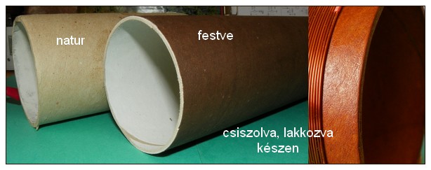 A csévetestek egy része PVC lefolyó cső, 40 és 50mm átmérőjű. Ezekből lehet kapni rövidebb (idomokat) ill.darabokat. A másik része vastag falú papír csőből készül, ilyen pld. ipari papír kéztölő csévéje, ez nálam 75mm átmérőjű vagy vékonyabb a háztartási alufólia csééje 28mm átm. Ezek vagy ehhez hasonló anyagok a háztartásban, vagy munkahelyen hulladékként megtalálhatók. A papír csévetesteket valamilyen fapáccal lekenem, szükségszerint finom csiszolópapírral pld. lakkpapírral átcsiszolom, majd 2 soron sellakkal átkenem. A második lakkréteg előtt még lehet szálkamentesiteni egy kis csiszolással.Száradás után a papír megkeményedik és egy kicsit hasonlítani fog a bakelithez. Fapáchoz kisebb menyiségben is hozzá lehet jutni, por vagy oldat formályában. Ezekből az anyagokból ha megmarad valamennyi, hasznosítani tudjuk amatőr munkánk egyéb részein is, pld dobozolásnál, csévén a menetek rögzítésére, stb. Amire munkánk során szükség lehet: lombfűrész, tapétázó kés, csiszolópapír, lakk. Még egy kis segédlet a mellékletben.