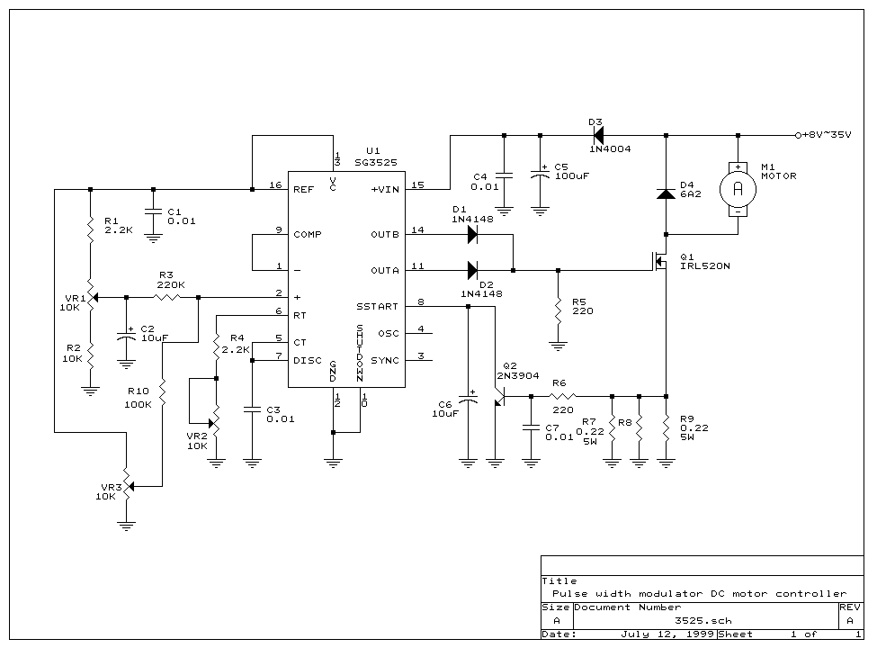 A tápfesz ebben az esetben a biztonságos tartomány esetén 8 - 35V . 8V alá nem lehet menni, mert nem nyit ki rendesen a FET, kicsit kevés is neki, jobb lenne 10V vagy a feletti érték, de úgy is elmegy.. A P1 potival a minimum értéket lehet beállítani, a P2 -vel a maximumot, az INPUT bemenetre pedig a Vref és a GND közötti tetszőleges feszültség kerülhet, vagyis +5V és a 0V között bármi. Ha úgy kötsz be egy potit, hogy az egyik széle a Vref, a közepe az INPUT és a másik széle a GND, akkor a beállított maximum és minimum érték között tudod szabályozni a kimenetet. A frekvencia ezekkel az alkatrészekkel 100 Hz - 5 KHz között állítható, tetszőleges értékre, ami a legjobban megfelel mondjuk a motornak. Csatoltam egy nagyon hasonlót, lehet, hogy ez jobban tetszik majd, kicsivel egyszerűbb. Üdvözlettel? patkolttojas