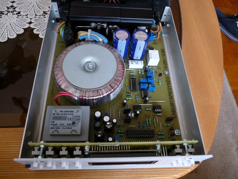 Hellyel közel elkészült a labortápom. Még az előlap hiányzik. Itt van egy-két kép kedvcsinálónak