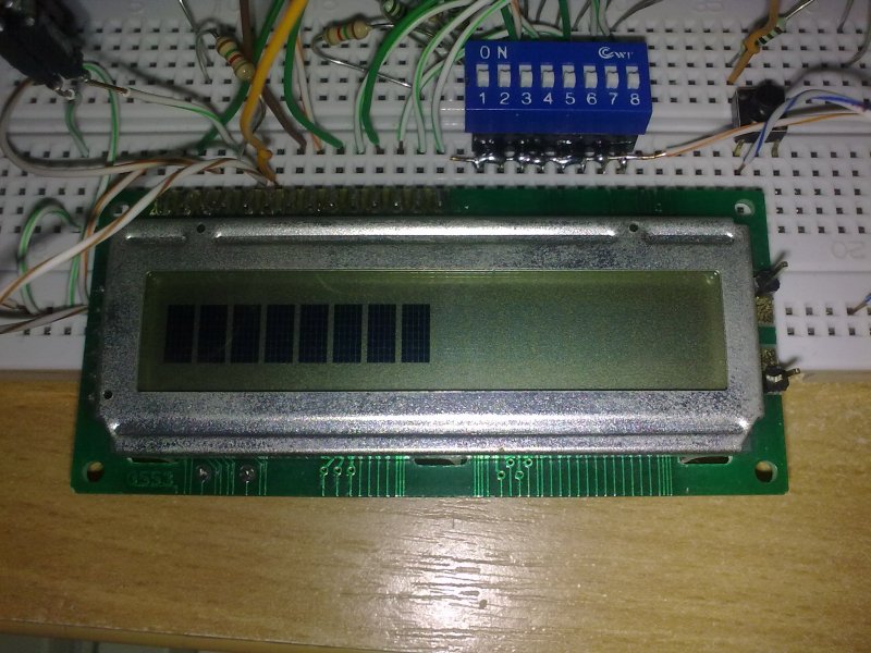 Sziasztok, mint említettem most kezdtem el játszani az lcd kijelzőkkel, összedugdostam az lcd cikkben található dip kapcsolós kis kapcsolást, bekapcsoltam a tápot, és a csatolt képen látható dolog jelenik meg a kijelzőn. Valakinek lenne ötlete, hogy mitől szoktak ilyet kirajzolni az lcd-k? Bármit próbálok vele, nem változik ez a mintázat.