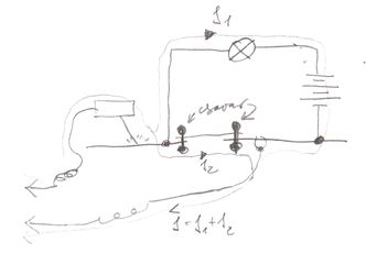 Üdv! Csatoltam egy rajzot, itt láthatsz egy olyan helyzetet, amikor a hegesztőáram az akkun és egy fogyasztón át folyik.