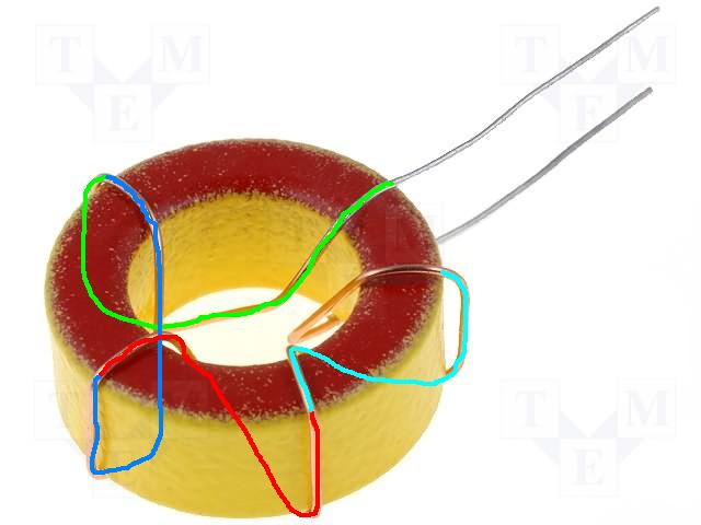 Pedig a gyűrűknél nincs félmenet... ha csak nem fúrod meg a gyűrűt a felénél. Ott átdugod a drótot és az egy fél menet, mert csak a fele vasban levő fluxussal fog kapcsolódni. Az induktivitásnak ebben a felállásban semmi köze a menetszámhoz.