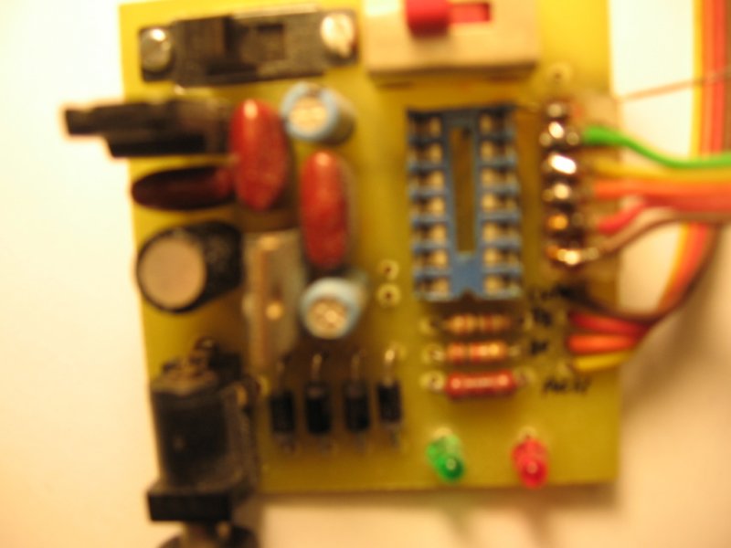 Nos. Mivel egyszerűbb volt, megépítettem az oshon féle kapcsolást, némi kegészítéssel. Mivel Egerben nem lehetett kapni 74xx IC-t, vettem CD4049-est. Majdnem jó lett. Tennem kellett egy szintillesztőt a Vpp-t vezérlő tranzisztor elé (egy BC 550-et), a Vpp-t ezért invertálni kellett. LPT Szalagkábel 30cm. Teszt OK. A PIC-et sikerült felprogramoznom, hurrá.