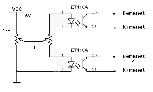 Ugyanis a hogy nézegettem így lehetne spórolni a toló potmétereken. 1 mono potra sztereó sáv + 1balansz poti. Kérdés hogy az optocsatoló mennyit torzítana vagy működne-e vele...