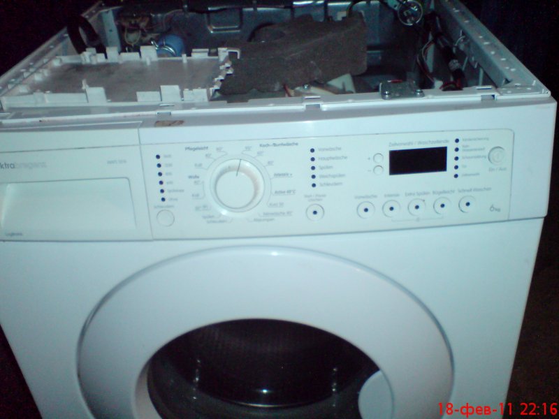 Tehát mosógép áramtalanít, ajtó reteszelés oldott, ajtót kinyitottam, semmi érdekesség. Ajtót visszazártam, mosógépet bekapcsoltam, ajtó reteszelt, kattant is a kapcsolója, de a reteszelést jelző led semmit nem jelzett. A reteszelő kapcsoló zárt, de biztonság kedvéért azért átkötöttem, de semmi változás. Minden érzékelőt amit csak lehetett kimértem, minden jó volt, vezérlő panelon hibát nem láttam, de mégsem ment. Tehát itt feladtam, összeraktam az egészet és kész.