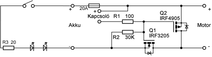 A problémát ott látom, hogy a motor elég angy áramot is képes felvenni ( 18A ), így nem tudom hogy viselkedne a másik ágon a LED. Illetve hallottam valami olyasmit is, hogy a motor valami visszáramot ad le miután lekapcsoltam.