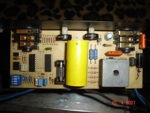 Lenne egy nagy problémám. Van egy Dragon típusú 1700W-os stroboszkópom, odadtam egyik havernek, hogy használja buliba és a hülye rákötötte az INPUT (bemeneti pontra, ahova a vezérlőt kell kötni) pontra a 250W-os Castone erősítő kimenetét. Na most már a stroboszkóp nem működik rendesen. Ha bekapcsolom villan egyet és utánna semmi, mikor kikapcsolom megint villan egyet. Nem tudom mi lehet a probléma. Szétszedtem a kondik, az ellenállások, diódák jók. Van 3 IC-nek látszó valami (le vannak kapargatva a típusszámok) azokról nem tudom megállapítani, hogy jók-e? Van egy tirisztor az áramkörben az is jónak tűnik. Még esetleg az inpulzustrafóra vagy a csőre lehet gondolni, hogy az mehetett tönkre talán. A bemeneten lévő optocsatoló is jó. Szeretnék segítséget kérni hátha valaki találkozott már ilyen problémával, vagy valakinek esetleg van ilyen stroboszkóp doksija. Válaszokat előre is köszönöm (mellékelek néhány képet a strobiról)