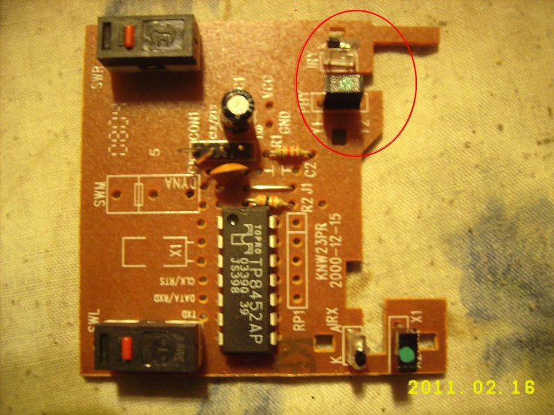 A kiforrasztott fotoalkatrészeket sikeresen a munkahelyemen felejtettem. Azonban van rossz egerem dögivel. De ujabb meglepetés: Ebben az egérben viszont 2 lábu a fotoled és 3 lábu a fototranzisztor. Ez viszont ellentmond laszlokunstar hozzászólásával. Nekem talán jobb is ha elösször ennek a variációnak a működését értem meg, s utána jön a 3 és 4 lábas variáció. Íme a sztárfotók: