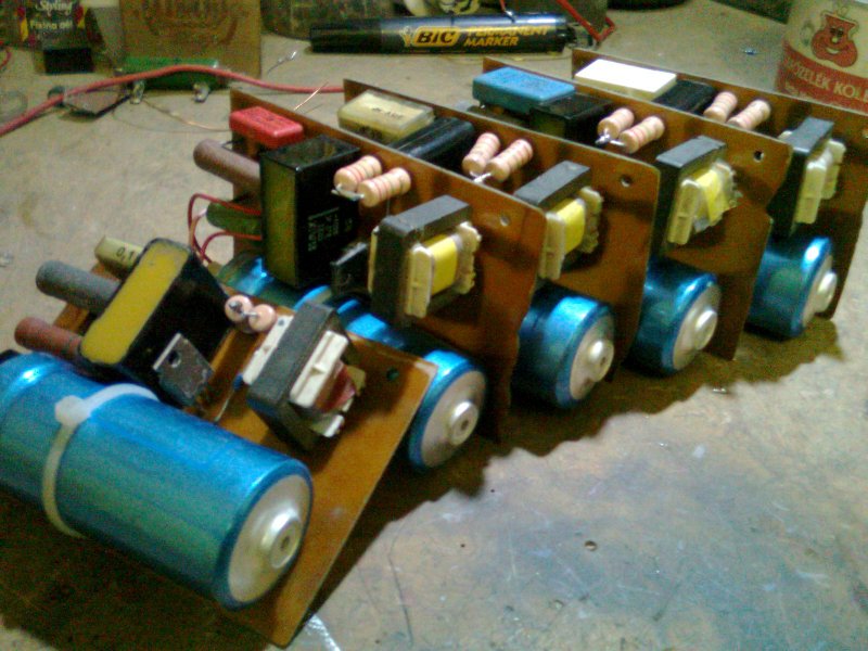 Hali csak azért igy készült mert ez a 42v-os trafo akadt a kezembe és kiváncsi voltam mit tudok kihozni belölle.Elösször én is 220/220-as trafokkal csináltam nagyon jo volt ,csak elfogyott a trafo és ujjat szerezni drága volt. Na ebböl jött az én ötletem az általam tervezett és készitett kapcsolás:elősször diakos gyujtás aztán levállaszto trafo és bevált képet már régebben mutattam.Majd teszek a panelokbol az aproba van kész 5 db.