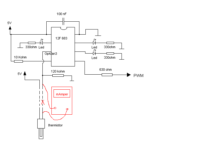 Nekem az nem világos, hogy mit akartál így mérni? A termisztoron folyó áramot? Csak mert azt meg lehet abból tudni, hogy a mért feszültséget elosztod a 120k ellenállással...