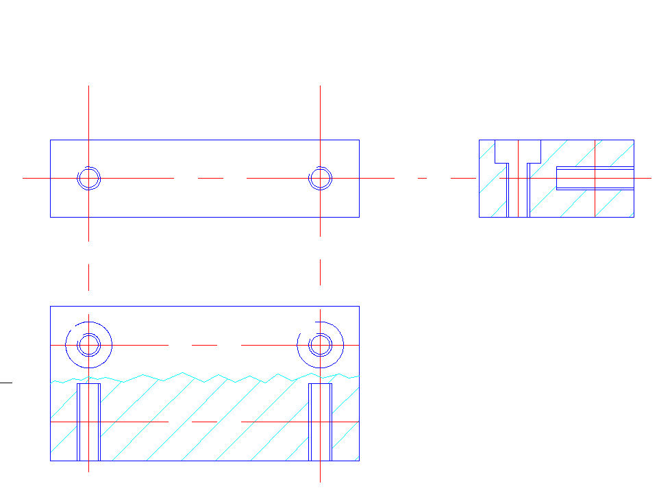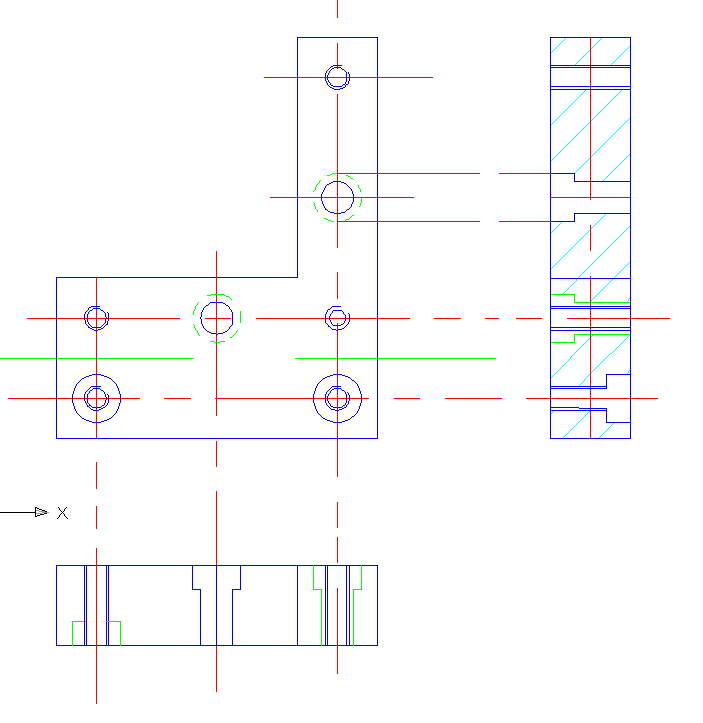 A problémát az okozza, hogy egymás mögött minden furatot egybe rajzolsz. Minden sort rajzolj külön metszetre. Tehát a dichro tartón még két metszet a jobb oldalra. Betűkkel vagy számokkal jelölve melyik hol van. Bár egy intelligensebb fémmunkás már ebből is megcsinálja neked.