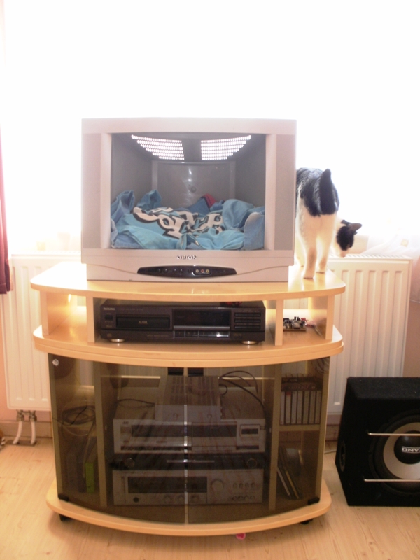 Én úgy gondoltam, hogy csinálok magamnak egyet. A garázsomban hempergett egy Régi Orion tv. Azt alakítottam át. A Táppal vannak még gondok... Ha kevés nyervog a hang, ha sok akkor pedig berreg. De így is szórakoztató. Gondoltam megmutatom nektek , hogy sikerült.