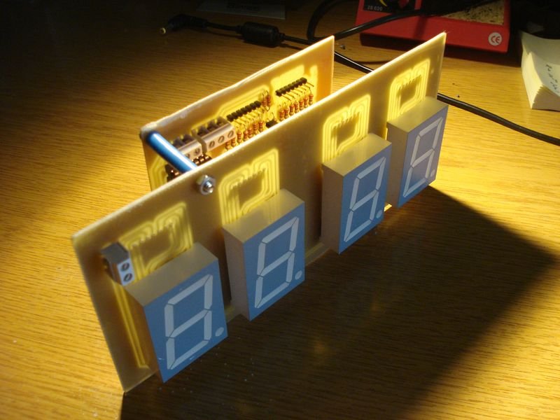 Jelenleg édesanyámnak készítek egy hétszegmenses kijelzős PIC-es órát. Igazából semmi egyéb feladata nem lesz, mint az időt mutatni, szóval más különleges funkció nem került bele. A panasz az volt, hogy a mai digitális órákon nem látni a számokat olyan kicsik. Hát én 38mm-s kijelzőkkel építettem meg, remélem ez már láthatóbb lesz!