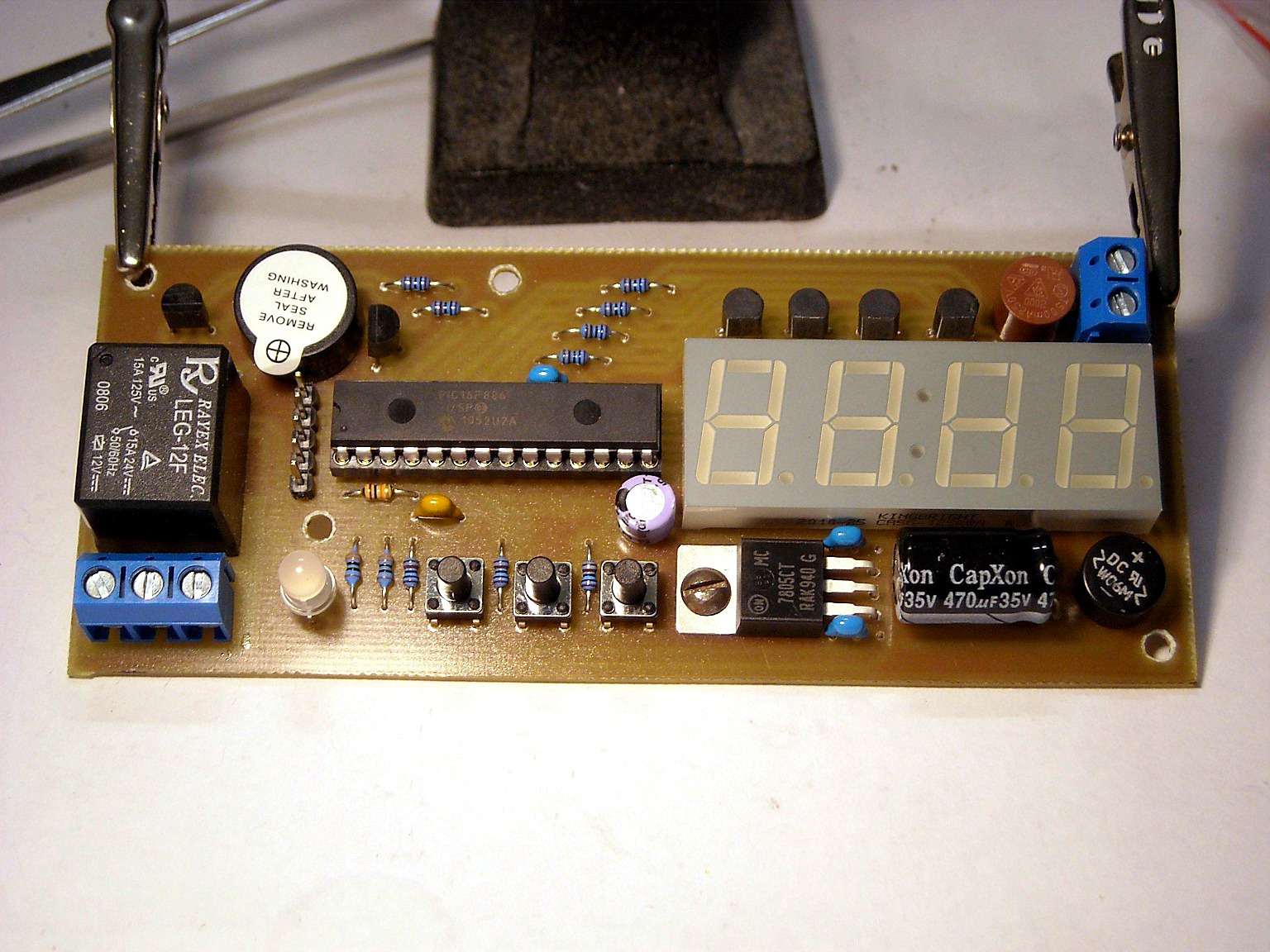 Jöjjenek a válaszok: Ez egy időzítő max. 59perc : 59 másodpercre. A panelon a dátum lett elbafva. (Rá áll a kezem a 2010-re) A kapcsoló egyik lába azért nincs bekötve, mert a szomszédos lábbal gyárilagosan (a tokon belül) már össze van kötve és így földön van. A csavar nem dísz a 7805 hűtőfülén és nem is a hőt viszi el. Szimpla mechanikai rögzítés. (Bezony, bezony. Ilyesmire is illik odafigyelni! Ja, és a másik oldalon anya is van a csavar végén...) A relé, értelem szerűen a kimenetére kötött berendezést kapcsolja ki/be. Azért lett furat szerelt változat, mert többen szóltak, hogy nehéz után építeniük az smd-s kapcsolásaimat.