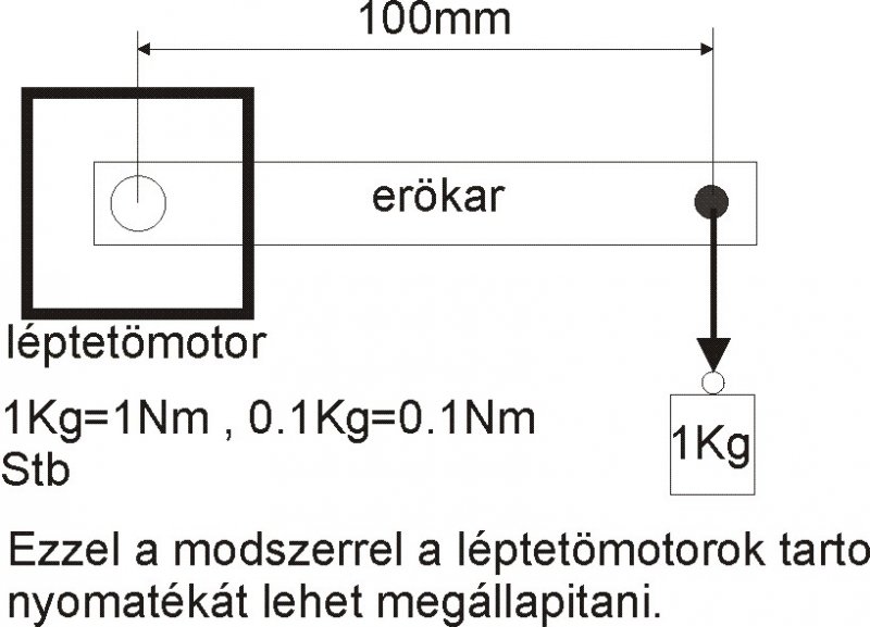 1Nm-es motor 1N erőt fejt ki egy méteres erőkaron. 10N-t 10cm-es erőkaron. 1N~100gramm vízszintes erőkar esetén.