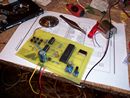 a FET-ek előtti ellenállat nincs megadva, én 470 ohmosakat tettem, oda és látszólag szépen muzyikál velük. FET gyanán pedig nem a kapcsolásban szereplőt, hanem régebbi winyókban található DIP tokozású feteket használtam. Ezek típusa általában IRFD123 (N-FET) és IRFD9120 (P-FET).