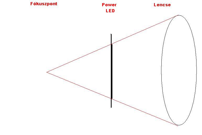 A power led pont, csak kicsit nagy, és négyszögletes, de a mienk . A lencséhez közelebb kell tenni, mint eredetileg az izzó volt. (ugyanazt az optikát feltételezve)