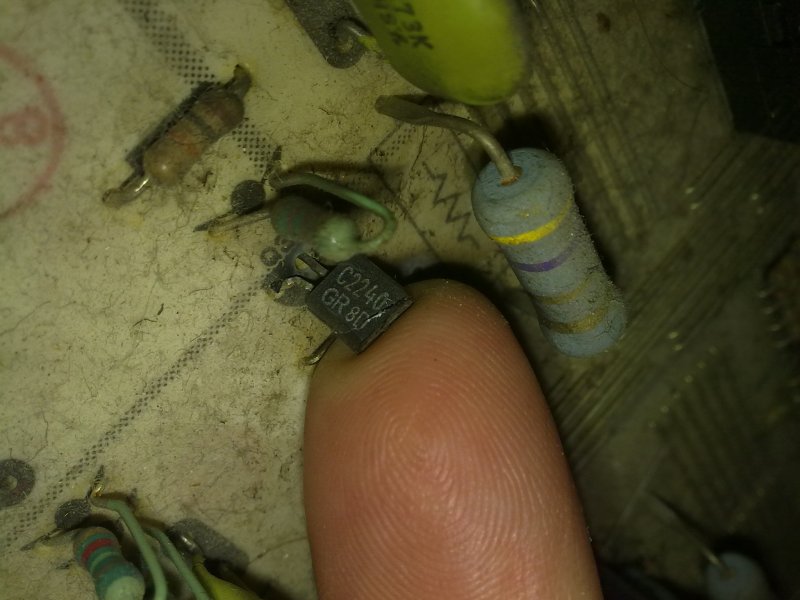 2Sa és 2 Sc tranzisztorok lehetnek. De érdemes tovább keresni mert más baj is lehet. Ha leesett lehet alkatrész forrasztás kiszakadva.