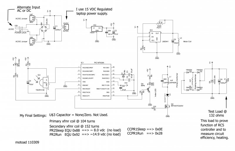 For your information. I have many hours of experimentation with the original 100/150 turns propeller transformer. I tried many values of capacitor in parallel with the primary coil @ PR2RUN EQU 0x3D. These were helpful from 12 to 30 nF. Then I tried many values of PR2RUN. See attached photo. I finally used PR@RUN EQU 0x92. Yes. Yes. PR2RUN EQU 0x92. Tuning is perfect. No heating. 0x92 is very different from 0x3D. DANGER. I changed PR2RUN in small steps, or small increments. Currents greater than 1000ma can occur before you see a resonant circuit. My measurements were posted in message (# 922778). Bővebben: Link