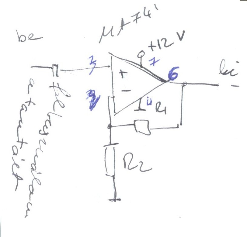 - Az első kapcsolásban a GND-re menő BAT dióda fordítva van bekötve.. A tápfesz nincs megjelölve, de az első erősítő fokozat erősítése, a hangszóró kimenet miatt, szinte felesleges, (munkapont beállítása sem túl szerencsés) de elég lett volna egy egyszerű emitterkövető fokozat is. - A második kapcsolás az "vagy jön valahonnan, vagy megy valahová". Leginkább a kukába. (Munkapont és egyben erősítés beállítása értelmetlen.) - A harmadik kapcsolásnál a műveleti erősítő elvileg komparátorként működik, de munkapont beállítása értelmetlen. A neminvertáló láb "nem lóghat a levegőben". Mert egy kondin keresztül, pont ezt teszi. Minimum egy 22k/10k osztót kívánna a tápfeszültségből, ha már a másik bemenet szintje szabályozva van mint "küszöbfeszültség". - A negyedik kapcsolás munkapont beállítása is helytelen. 8bemenet szintén nem lóghat a levegőben) Egy-tápfeszültségű üzem esetén, a neminvertáló bemenetre a tápfeszültség fele kell. Tehát ide egy 1:1 arányú osztó lenne szükséges. De ekkor az erősítés Au=(R1/R2)+1 értékű, de ez a munkaponti egyenáramra is igaz, ezért az IC kimenete kimenne a tápfeszültségre. Így az R2-vel sorosan egy kondi szükséges. Ekkor a váltakozóáramú erősítés a fennemlített Au, egyenáramú erősítése 1. Tehát a kimeneten szintén 6V lesz mérhető, mint az 1:1-es osztó után. üdv! proli007