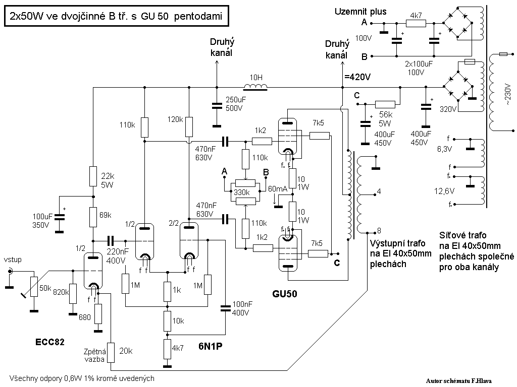 Igen, fizetős, de azon az oldalon is rajta van, amit a gugli felhoz, igaz elég kis méretben, de azért látható.Bővebben: Link Ha a hálózati trafódon van 4 V, akkor nagyon valószínű, hogy jó lesz. A két elkó, amit használhatsz ezesetben 32 +32 µF lehet az előzőkben leírtak miatt, a félvezetős egyenirányítás 100 + 100 µF -jával szemben. A kb. 25 - 26 mA fogyasztásnál ennek elégnek kell lennie. A meghajtó fokozat 47 kohm utáni szűrőkondi már maradhat. A másik rajz szerint ugyan 47 µF ok vannak, de a végcső mellett (felett) is van egy, ami már sok.