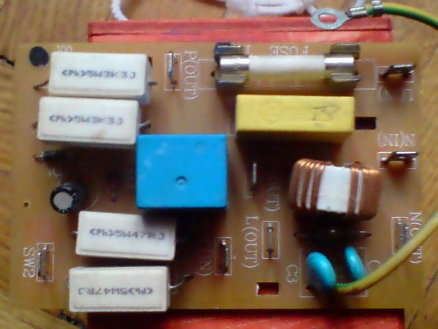 Hátha ez segít: az utolsó képen bal oldalon egy 10n/400VAC kondi van. Ha nem tévedek, akkor XY-os, ez vagy közvetlen a 230-as aljzaton volt szűrés gyanánt, vagy a közelében.