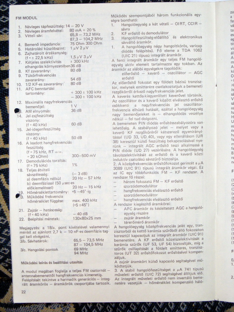 Írtam, mik okoznak hangolódást, sajnos, sok oka lehet. Ha szakadozik a tasztatúrában valamelyik potméter szénpályája, vagy a hangolópotméter szénpályája, azzal nem tudsz mit csinálni. Egy bizonyonyos kor után előszeretettel szakadoznak ezek a felgőzölt szénrétegek. Nem kontakt hibát írok, tehát nem a leszedő érintkezők hibáját, hanem magának a potméternek a szakadozását. Szerintem sem a tasztatúra, sem a hangolópoti nem szerezhető már be hozzá. A tasztatúra az, aminek a fotóját feltetted, a hangolópoti meg a forgókondenzátor hátlap felőli végére van felszerelve. Ha megtalálom a szervízkönyvet, megnézem az FM modul beállításait.