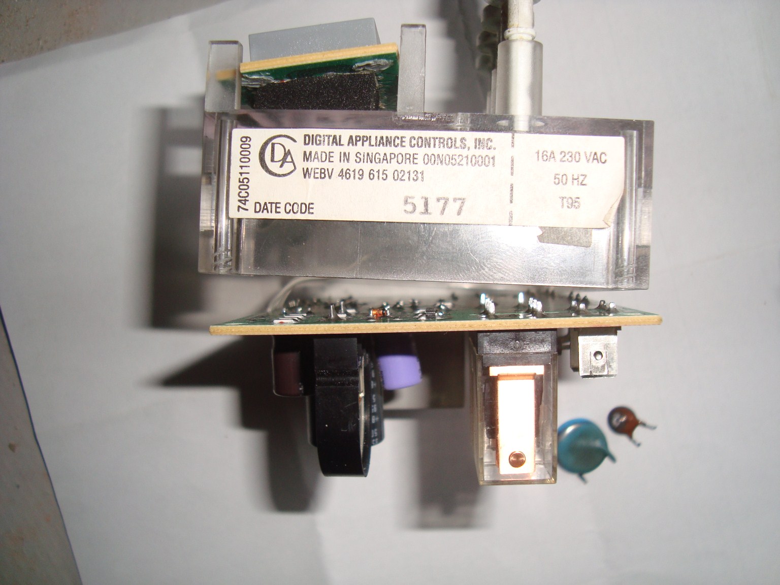 A fekete kütyü egy piezo-generátor gázgyújtáshoz. A PTC-nek abban a szerepkörben nincs védelmi feladata, de másfajta PTC-t használnak pl. villanymotor védelmére.