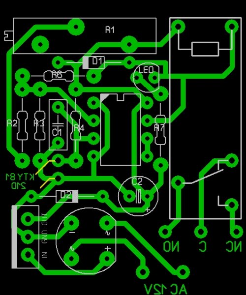 Megépítettem ezt a hőkapcsoló áramkört. Működik is, állítható rajta a hőmérséklet, csak annyi a hibája, hogy a kimenetén amikor a led kigyullad csak 2,5V-ot mértem, ahogy ezután a hőmérséklet emelkedik kb 2,8V-nál elkezd a relé zizegni és 3V-nál húz meg, de még 3,8V-ig tovább zizeg rezeg. Ennek nem egyből a -12V-ot kellene kiadnia a kimenetre? Hol keressem a hibát, Az ic lenne rossz? A beforrasztásnál vigyáztam biztos nem melegedett túl. Mellékelem az elkészített nyákot.