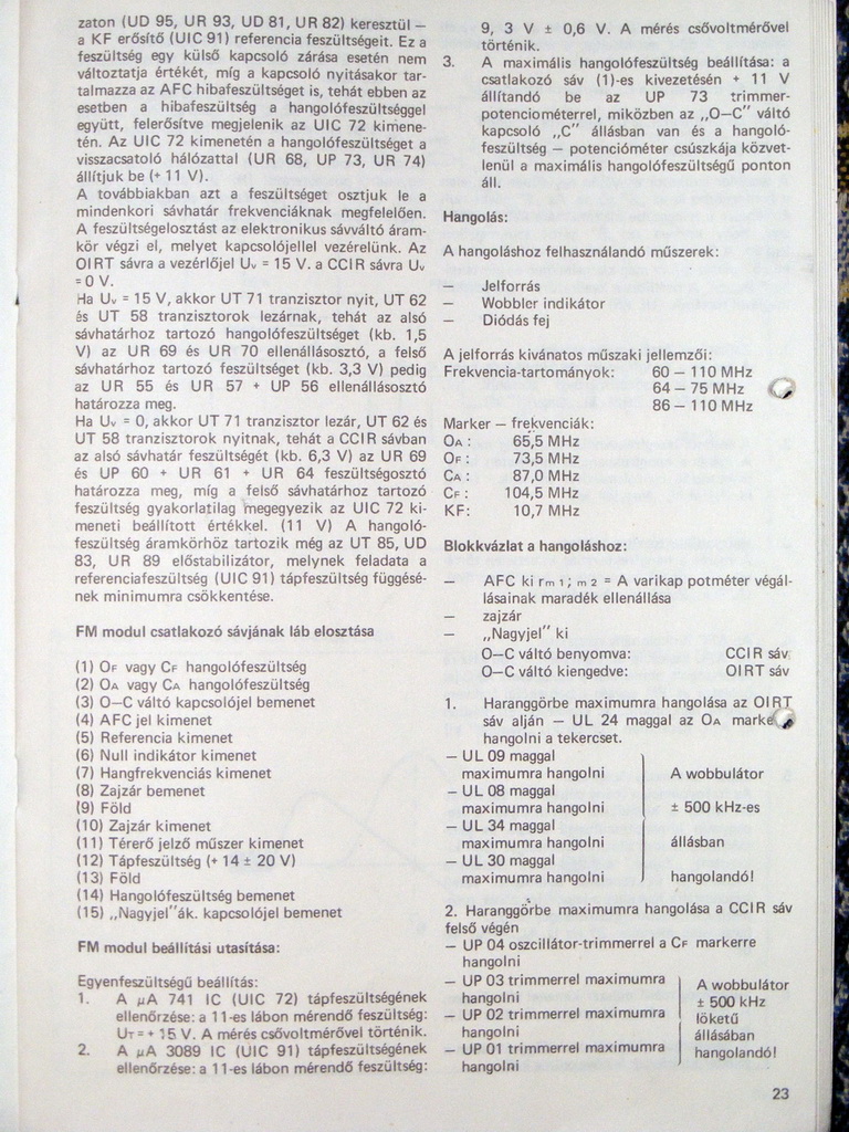 A hangolópoti poz. száma: AP84, és az AM modul tömbvázlatán találod meg a jobb felső sarokban, ha van rajzod. Csatoltam a szervízkönyvből az FM modul beállítását. Nincs itthon szkennerem, úgyhogy fényképeztem.