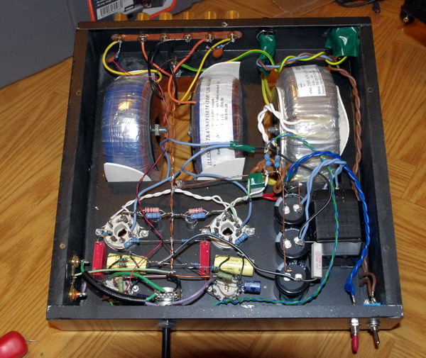 Továbbléptem az SE erősítővel. elkészült a belső szerelés, már csak a díszítő elemek hiányoznak. a végleges csőkészlet Tungsram EF86 és EL34 Japán verziója. Próbáltam orosz csöveket is de a hangjuk nem volt olyan jó mint a japáné. A hang a toroid kimenőknek köszönhetően sterilebb, keményebb közelebb áll egy tranzisztoroshoz mint a hagyományosan lemezelt trafóké. Lehet hogy csöves egyenirányítás még lágyítana, vagy javítana a hangon, ezt a következő erősítőnél fogom kipróbálni. Másrészt viszont mindent megmutat, elég mélyre és magasra megy, szóval rendben van.