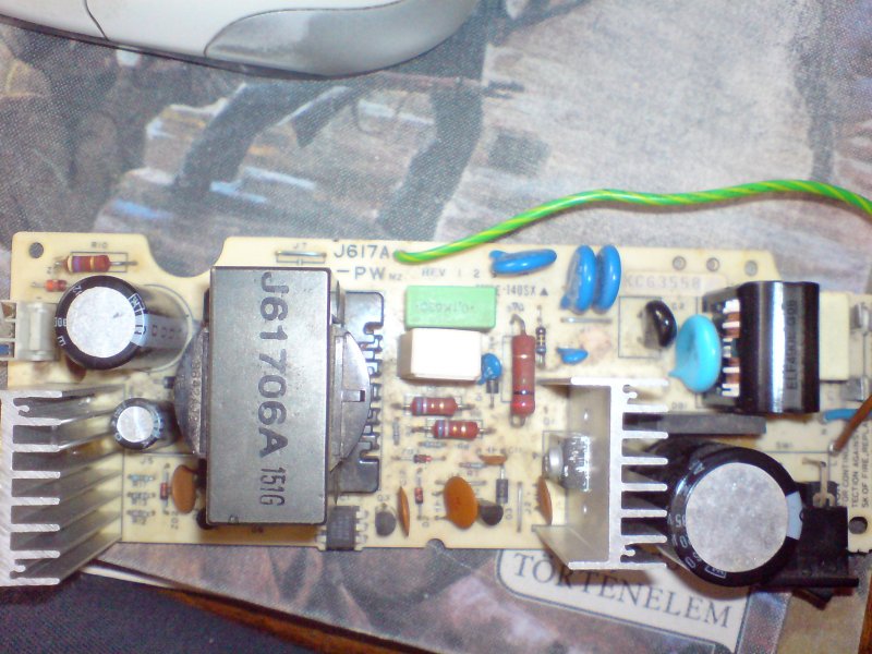 Sziasztok! Kaptam egy tápot, nem tudom miben volt. A panelra az van írva hogy J617A-PW. A kapcsolótranzisztorja az 2sc4237 Vcbo= 1200V Vceo=800V Ic=3A, a diódája az D4L20U 200V/4A. A kimenti feszültsége az 24V, a kimeneti csatlakozó közelében van egy 24V 1W zéner egy 470 ohm 1W ellenállással párhuzamosan. Ha kiszedem a zénert és az ellenállást nem fog tönkremenni a táp, kíváncsi vagyok rá, hogy mennyi feszültséget ad ki zéner nélkül, a kondi az 3300µF 35V.1200V-os Kapcsolótranzisztornak minek ebbe a tápba? Mellékelem a képeket.