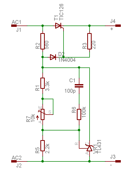 Szeretnék egy egyszerű akkutöltőt építeni, nincsenek extrák alapján nagy igények. Amit szeretnék, hogy 10A körüli áramot tudjon, ill 14,4V-nál följebb ne menjen a fesz. Ki is néztem az alábbi kapcsolást. Az lenne a kérdés, hogy működőképes az áramkör így rajz alapján, érdemes megépíteni?