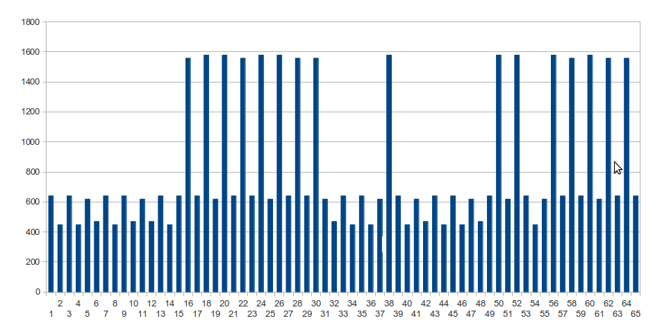 Van egy infra jelsorozatom egy táviránytóból, amit egy PIC-kel USB-n keresztül a gépre küldök, pontosabban egy timerrel mérem a jelváltások közti szünetet, és azt küldöm (TSOP1736 a vevő). Nem tudok rájönni, hogy ez milyen kódolás akar lenni, ami kiesik a PIC-ből. Elvileg RC5 lenne a távirányító, de az egész egy nagy katyvasznak tűnik nekem. Mellékeltem egy képet, rajta az egymást követű impulzusok közötti szünetekkel az Y tengelyen mikroszekundumban, egy oszlop egy jelszintváltást jelent. Ha valakinek van valami ötlete, hogy ezt hogyan kellene értelmeznem, és, hogy miért van egyértelműen háromféle szünet érték, azt megköszönném.