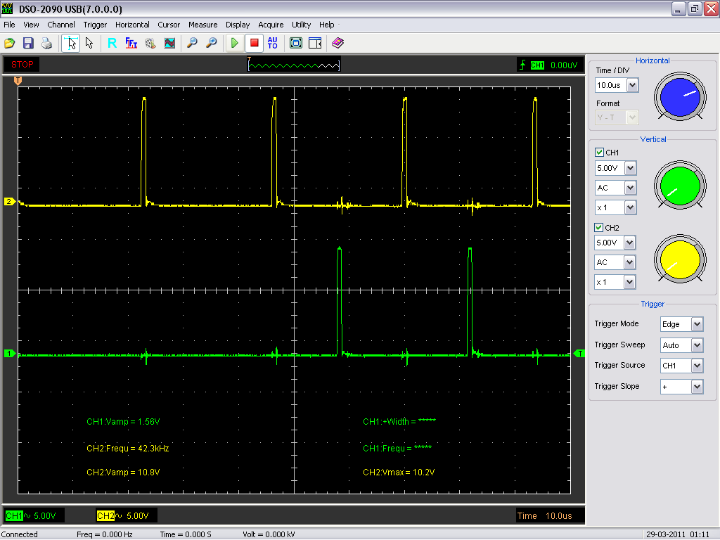 Itt látszik hogy terhelésre sincs szinkromban a kimeneti fesz.