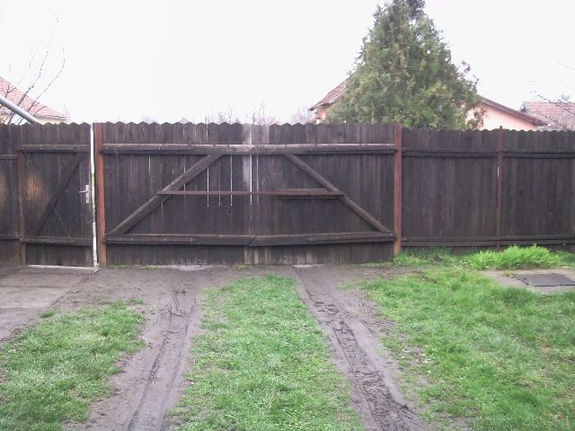 Egy mezei kétszárnyú fakapuból kellett kihozni valamit. Alábetonoztunk egy csíkot és összevarrtunk neki egy keretet . Az alsó görgők gyáriak, a felsők energomat mosógép lábaiból készültek.