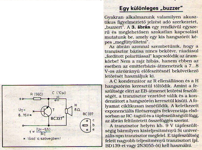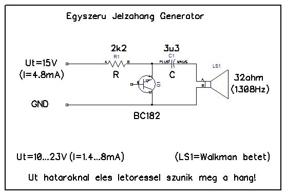 A zümmer használata nekem sem jött be ( általában ezek 2-4kHz körül adnak hangot 70-80dB hangerővel ) irtó idegesítő, főleg hosszabb távon. A megfelelő hang véleményem szerint 1kHz környéke, de inkább alatta és max. 50dB. Erre viszont van egy nagyon egyszerű megoldás, amely remekül működik, széles tápfesz tartományban használható kicsi az áramfelvétele és nem idegesítő a hangja.(először el se hittem, hogy működik...)