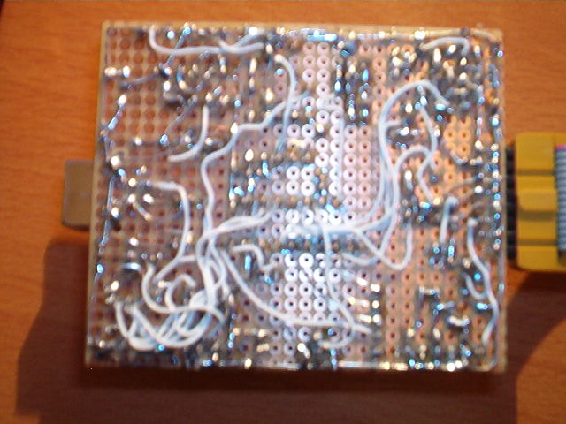 Sajnos ez így van már sok-sok ideje, amit valaki szeretne megismerni, abba bele kell ássa magát. Nem fogja senki sem elmondani az elejéről kezdve. Persze nem azt mondom, hogy az oktatóknak nem kellene érteni hozzá. A mai körölmények között, ha valaki az oktatói állás közben megtanul valamit, eljár a továbbképzésre, a megszerzett tudással máris jobban fizető állás után néz. Tisztelet a kivételeknek. Nem mai keletű az alábbi idézet: "Aki tudja, csinálja, aki nem tudja, tanítja." Kicsit idősebbek emlékeznek még, mekkora kincs volt egy adatlap a fénymásoló előtti időszakban - ha egy kicsit belegondolsz, megérted a RT-ben még mindig közölt adatlap oldalak okát. Most néhány kattintás, máris olvashatod... Mennyivel könnyebb ma! Majdnem elfelejtettem, hogy egy 8 bites mikrogép elpusztulása egy havi bért jelentett... Egy kezdőnek (nem akarok haza beszéni) a PICKit2 furatszerelt változatát ajánlanám. Az okok: - Úgy módosítottam a kapcsolást, hogy végigmérhető a kontroller nélkül, - Az integrált áramkörök a bemérés folymatában többször is kivehetők, ha foglalatot használunk. Hiba esetén cserélhetők. - A mérés egyszerűbb, mint a kétoldalas smd panelen. - Elkészíthető egyoldalas vasalásos technológiával is. - Részletes bemérési eljárási írtam hozzá. - Amikor megépítettem még nem tudtam elfogadható nyák-ot készíteni és próbapanelen építettem meg. A mai napig kifogástalanul működik. Bármelyik felépítést választos (nyák vagy próbapanel) a klón elkészíthető fokozatosan: - Az U3, U4, J7, J71, J72, R8, R9 csak a Program and Go funkcióhoz kell - Elhagyható, az első ilyen feladatkor elég beültetni. - U2, R4,C8, R42, R31, R7, R6, R5, Q1 elhagyható, ha csak 5V -os kontrollereket kell programozni. Ekkor Q1 foglalatában az 1. és a 8. lábat kössük össze. Később, ha nem csak 5V -os kontroller is előkerül, vagy nem 5V tápfeszültséggel járó kontrollert kell a kártyáján programozni, akkor elég beültetni. Az anyagköltségben az EEPromok jelentősek, a többi nem haladja meg az egész 10% -át. Felteszem a prototípus fényképeit - a beültetés hasonló a nyomtatott verzióéhoz. A raszteres furatok miatt néhány alkatrész nem úgy áll, a próbapanelen nem volt szempont, hogy a vezetékek néhol nem férnének el - egymás felett is jól megvannak. A rövid vezetékek levágott alkatrész lábak, a hosszúak un. wirewrap vezetékek. Az utóbbi csupaszításánál nem szabad fogót használni, mert idővel ott törnek, ahol a fogó megnyomta őket. Forrasztó pákával le lehet olvasztani (a nem teflon) szigetelést. A vezeték végeit nyomjuk be az alkatrészek lábai mellé, úgy forrasszuk be. Így hosszú ideig megbízható kötést lehet létrehozni. (Néhány alkatrész elbújt a foglalatos IC-k alatt )Mivel minden kötést kézzel végeztem el a prototípuson, a bemérést úgy végeztem el, ahogy leírtam. Nem kellett hozzá más, mint egy multiméter, és egy labortáp / egy bemért 5V-os táp, egy alaplapi USB port kivezetés. Ha megépíted, - mentesülsz a kellemetlen, megmegyarázhatatlan működési problémáktól (JDM és a többiek), - olyan gépen is tudod használni, amin nincs párhuzamos port, - nem csak programozód lesz, hanem - - debugger, - - ttl szintű logikai ki- / bemenetek, - - 3 csatornás logikai analizátor, - - ttl szintű uart - közvetlen kapcsolat kontrollerekkel (nem csak a Microchip -tól származókkal), - nem kell várni másra (csak a Microchip-re), hogy az újabb típusokat is tudd programozni / debuggolni, - esetleg saját magad is tudod a listát bővíteni (hibát kijavítani a leírásokban) PICKit2 device file editor, - nem kell Atmell programozót sem építened, - egy USB - uart (ttl szintekkel) is a birtokodba kerül: PICKit is great. Hogy mondják a Szöktetésben? "Akinek ennyi jó kezés ..."