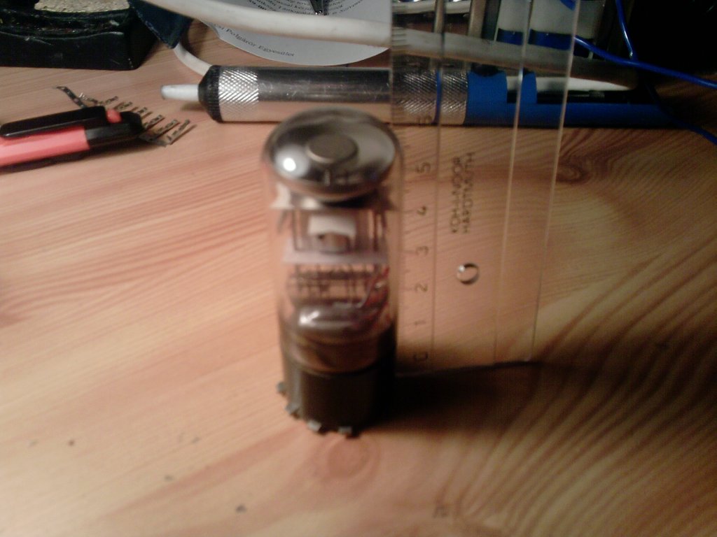 A fűtőszál a novál csöveknél általában a 4, 5 lábon van esetleg a fűtőszál közepe a 9 lábon. Adatlapból kiolvasható. Az ellenállás értéke kicsit kisebb, mint amit a fűtőfeszültségből, és áramból számolsz. De ha már mérni tudsz, akkor már jó. Némi probléma van, ha a lekopott felirat alapján nem azonosítható, de akkor színüveg lévén látható, illetve kikövetkeztethető, hogy melyik elektróda melyik lábra megy (némi gyakorlat után) hogy milyen csőről lehet szó. A getter az a fémszínű, vagy fekete bevonat, ami a cső búráján belül látható, ha ez rücskös, vagy fehér, a cső gázos, és hibás.