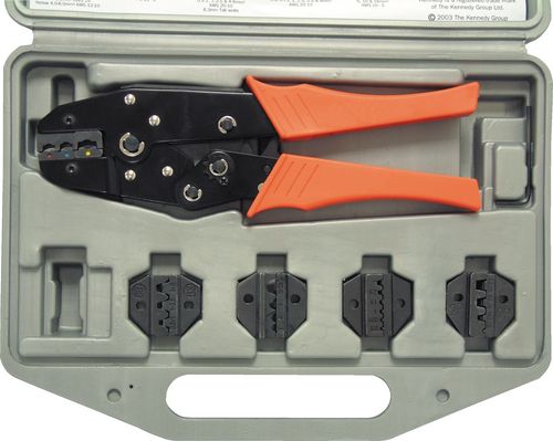 Nekem a kennedy tck 005 kit van. Árban megfizethető, félprofi kategóriába sorolnám. Áttételes, 5 garnitúra betéttel. Szinte minden saru és érvéghüvely nyomható vele. 5 éve vettem, ca 20k volt. 2-3000 nyomás után is ugyan olyan mint volt, semmi gondja.