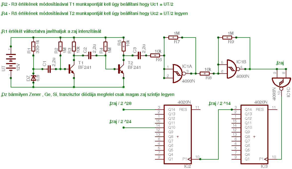 Analóg zajgenerátor valódi véletlen impulzusok , négyszögjelek előállításához.