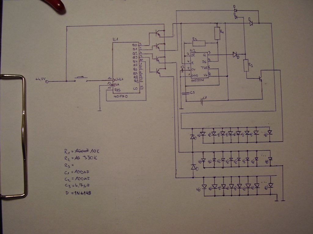 Helló megint... Terveztem egy villogós ledes bicólámpát, 555-tel és 4017-tel. A kérésem az lenne, hogy csekkolja már le valami hozzáértő, hogy működőképes-e.