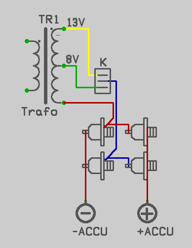 Egy gondolat hibás. Ha nincs hálózati feszültség, a töltő kisüti az aksit. És mély kisütés elleni védelem meg nincs. - Tehát a D4 ZPD5V6-ot ZPD15-re kell cserélni. Ekkor kisütés csak akkor van, ha a trafón megjelenik a negatív feszültség. - Az R8 ellenállást ekkor 470ohm-ra kell kicserélni, mert nem lesz elég a bázisáram. Tekintve hogy a T2 kvázi analóg módon fog működni (főleg ha T1 elkezdi lezárni), hűtés kell számára. Használd a TINA demó verzióját, akkor nem csak rajzolni tudsz, hanem szimulálni is.. üdv! proli007
