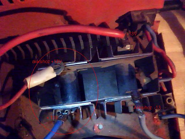 Ha elkészíted, tegyél rá egy izzót, és mérd meg a feszültség polaritását (melyik lesz a plusz). Mert elvileg ott lesz, ahol a diódák csavarja van, de léteznek "reverz" avagy fordított diódák is a tokban. Akkor minden ugyan az lesz, csak a polaritás lesz más. (oroszoknál diódáknál gyakran előfordul, más típusoknál, egy "R" betű utal arra, ha nem a katód van kivezetve a rögzítő csavarnál.) De a dióda vizsgálóval is megmérheted beépítés előtt. Akkor kel vezetnie, ha a műszer negatív csatlakozója megy a csavarra. Ha nem, akkor fordított. üdv! proli007