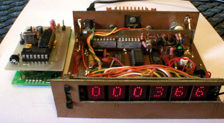 Beszélek itt össze-vissza... Nekem is van félkész motyom...Itt van pl a frekimérő: egymásmellé tettem a ledes és a LCD-s változatot. A ledesnek kéne egy tető meg lekéne fújni feketére...(asszem ezeket is felrakom a lapomra, olcsóért)