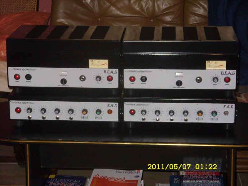 Jelentem túlvagyok mindkét APX-em teljes tuningján.A fáradságot és bosszúságot mind jóvátette amit okozott, elégedett vagyok vele.Teljesítménye brutális, persze láda is van hozzá, a hangja jó.Az új piros csövek beváltak, -56-58V-nál beállt a 25mA-es nyugalmi áram.Gábornak köszönhetően a szimmetria átalakítása után könnyedén, hajszálpontosra beállítható.A 100K poti nekem nem jött be, túl durván szabályzott, az 50K-sal precízen állítható.Köszönet MINDENKINEK akik segített tanácsaikkal, biztatásokkal.A felújításról teszek fel képeket.Párhuzamosan futott egy AK706-os felújítás is, de ez még 2-3 hét mire megvalósul.a kezdet már látható a képeken. Az előlap újra lett szitázva, ha valakinek szüksége lenne nyomdai segítségre írjon. Üdv.:Csaba