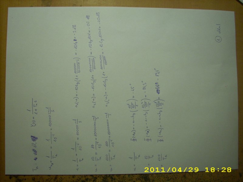 A behelyettesítést w=100 rad/sec sikerült megcsinálnom. De a Ta és Tb kiszámítása sehogy sem akar kijönni, ahogy neked. Illetve ha kijön az egyik, a másik már nem lesz a Tiéddel azonos. Mi lehet a baj? Ha meghatároztam a 2 töréspontot , ugye a közelítő Bode -diagramhoz meg kell határozni a decibel és a szög értékeket . Megpróbáltam már, de nagyon rossz eredmények jönnek ki. Valamilyen segítséget tudnál adni?