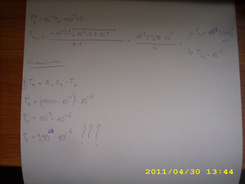 A másodfokú egyenlet egyik tagja tb2= 10^-6 és tb1=10^-4.Na eddig ok. Sikerült nekem is kiszámolni (végre). Na de, tovább visszaírom a 2. egyenletebe a 10^-6 ott jó ,mindkét oldalt kijön a 10^-9.De az elsőbe nem akar.Tudom nem szabályzástechnikai hiba ,én hibám de akkor se jön ki.